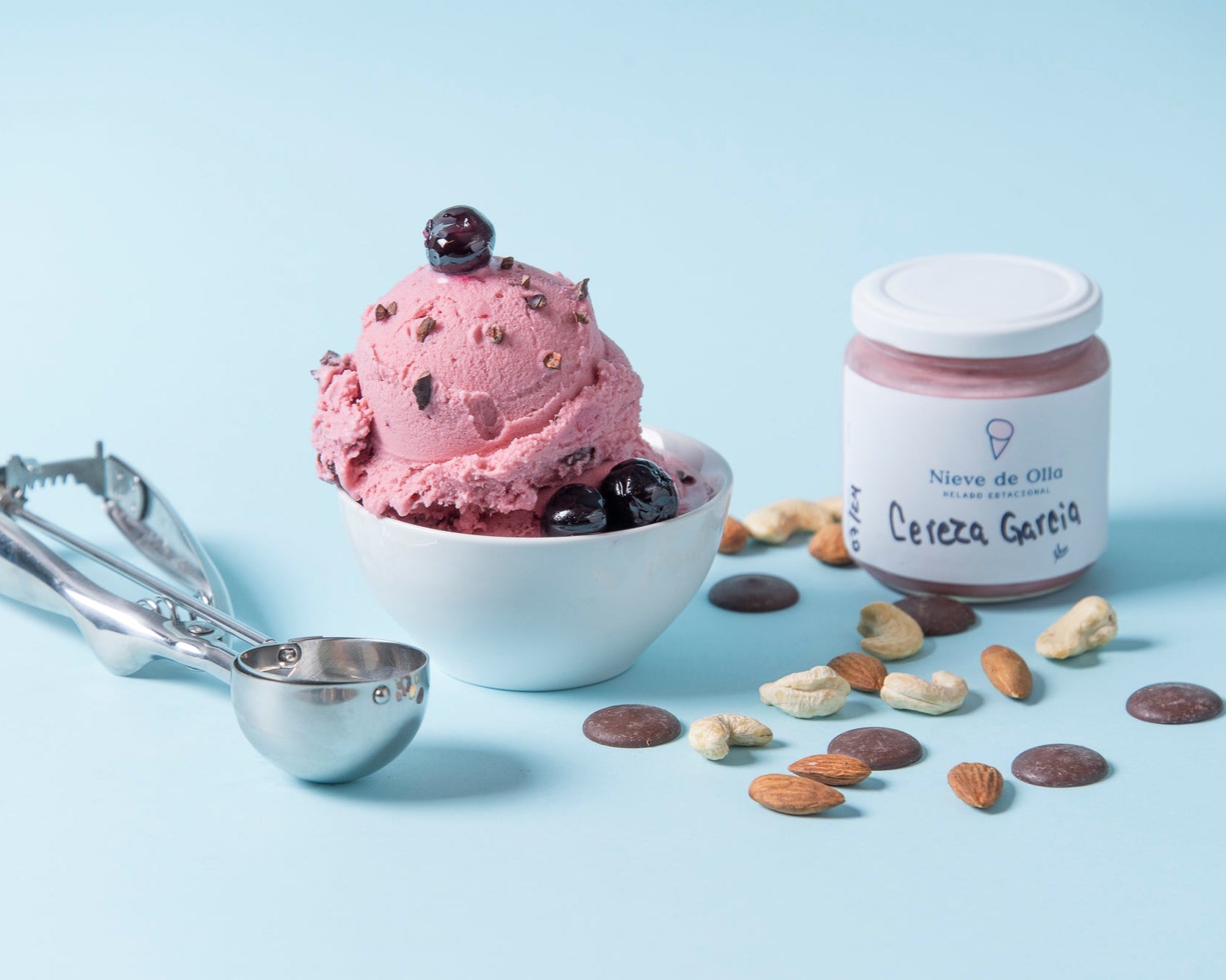 Helado de deliciosas cerezas negras con chocolate amargo de Tabasco al 70%, libre de lácteos, con almendra y nuez de la India. Endulzado con miel de agave para una experiencia equilibrada.